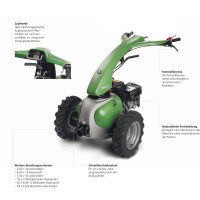 | Antrieb | Hydrostatischer Antrieb, stufenlose Geschwindigkeitsregulierung vor- und rückwärts |